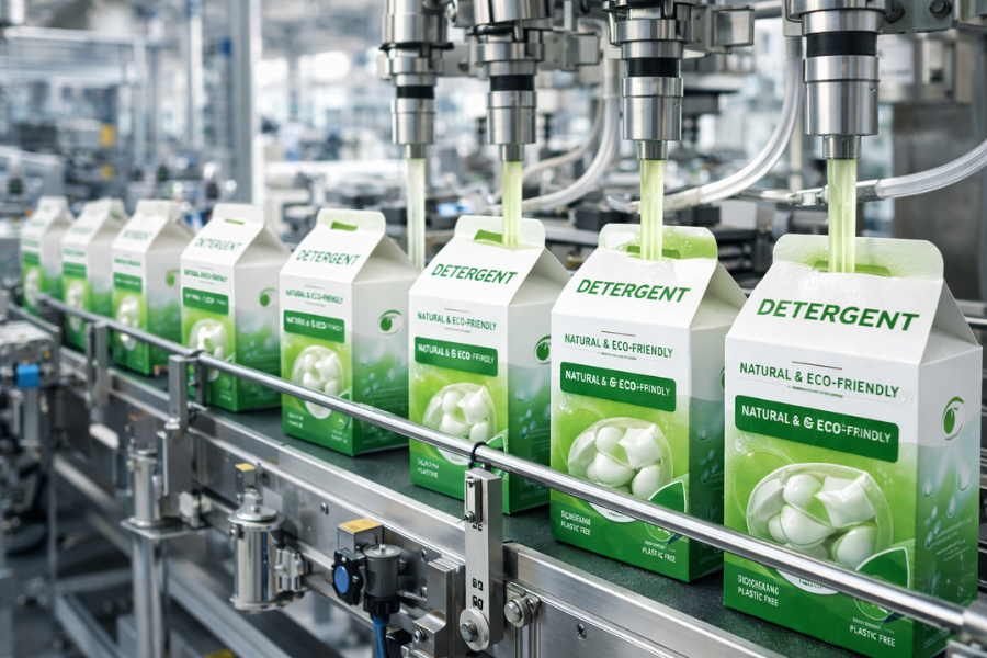 - Detergents & Cleaning Products (Light Soda Ash): Acts as a highly efficient “builder” in powdered detergents. It softens water by precipitating calcium and magnesium ions, allowing the active surfactants to clean fabrics more effectively.